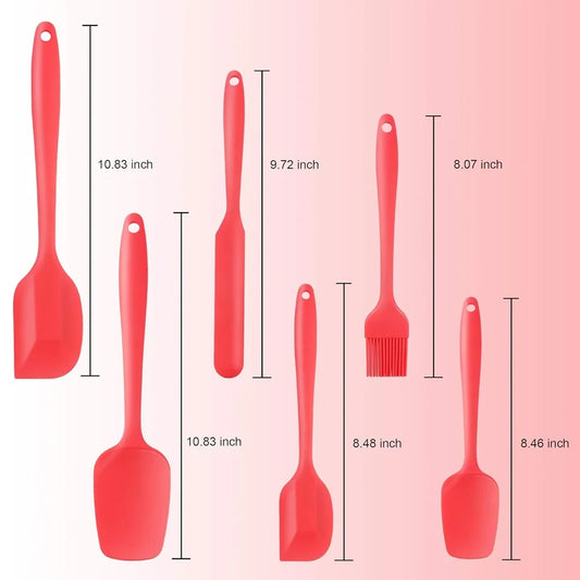 ባለ 6-ቁራጭ የሲሊኮን ስፓቱላ ስብስብ - የምግብ ደረጃ፣ ሙቀትን የሚቋቋም እና ለማብሰል እና ለመጋገር የማይጣበቅ