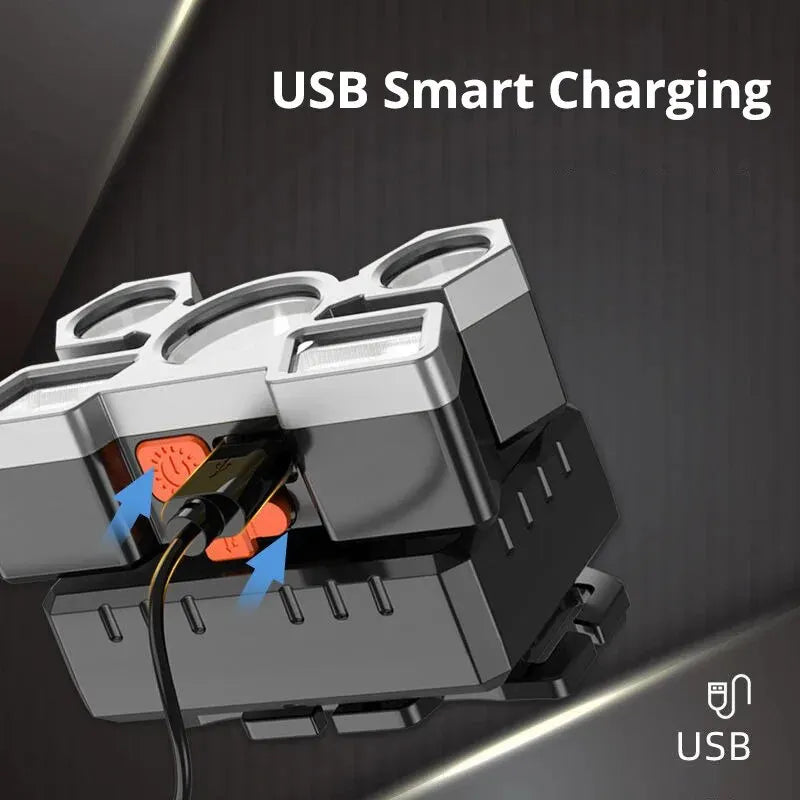 Illuminate your outdoor adventures with our rechargeable 5-LED headlamp. Designed for maximum brightness, this super bright head-mounted light is perfect for camping, fishing, mining, and more. The adjustable headband ensures a comfortable fit, while the long-lasting battery provides reliable lighting for extended use. Built for rugged environments, this headlamp delivers exceptional visibility for all your nighttime activities